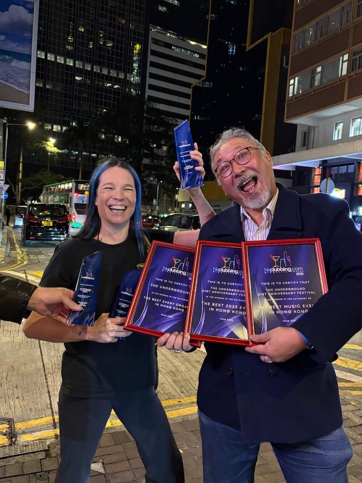 Earlier this month, the Underground was honoured as the “Best Event Organiser in Hong Kong” in HK Clubbing’s 2025 Nightlife Awards, and the Underground 21st Anniversary Festival, was awarded both “Best Event” and “Best Music Festival” in Hong Kong.