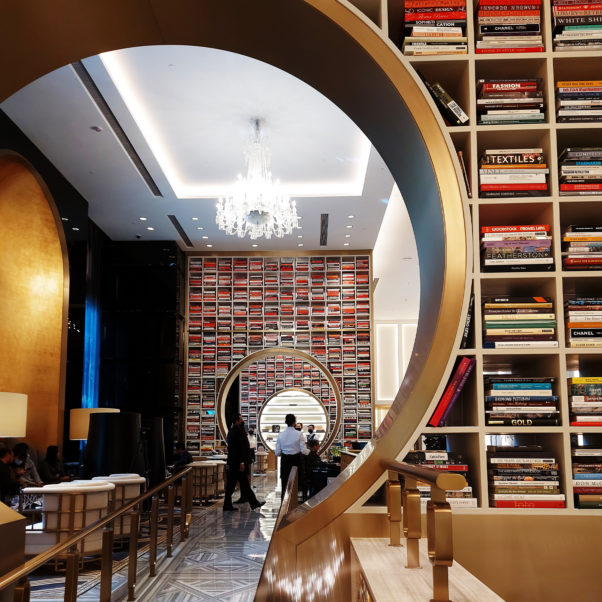 One of the key design points of the hotel is The Book Lounge in the lobby, which is said to derive direct inspiration from Karl Lagerfeld’s huge passion for books, and specifically the library at his photoshoot studio in Paris.